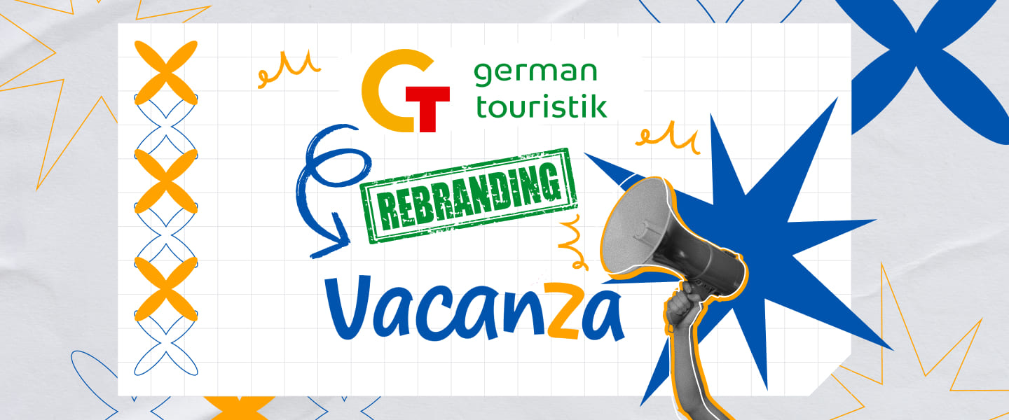 Our partners, German Touristik, have conducted a global rebranding and are now called Vacanza. The new name, which shines on their logo, translates from Italian as «vacation» and literally glows with smiles.